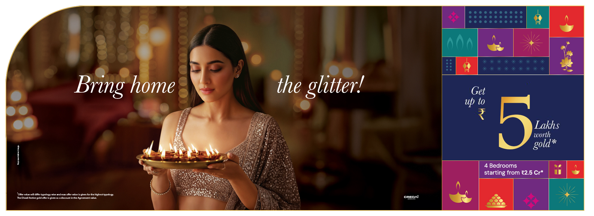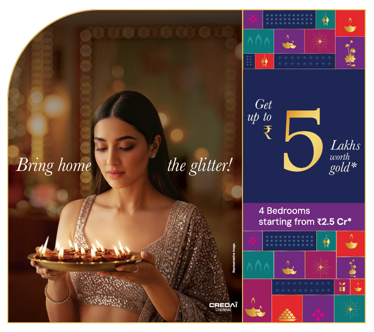 The price of 4 BHK apartments at Brigade Horizon starts from ₹2.5 Crore* onwards, Plus, make this festive season even more special with our exclusive Diwali Offer get up to ₹5 Lakhs worth of gold on your booking!* Hurry, offer valid only till 31st October.