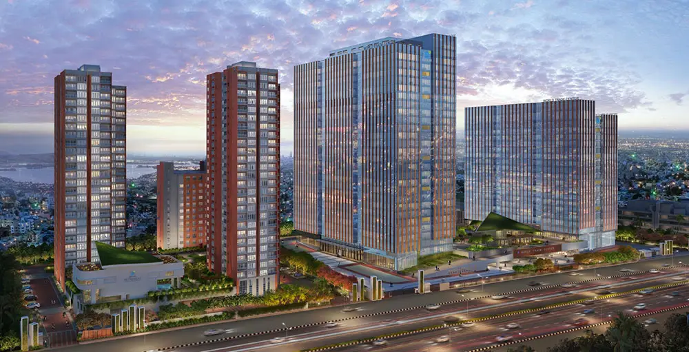 Rooftop swimming pool, Gymnasium & Aerobics space, Indoor play courts, Banquet hall, Jogging track, Amphitheatre, Children’s Play Area, Gazebos, Shopping arcade, Badminton court, Squash Court, Aroma Garden, Party area Located 10 minutes from Anna Nagar, 3 km from Koyambedu Metro Station and 4 km from Koyambedu Bus Terminus.