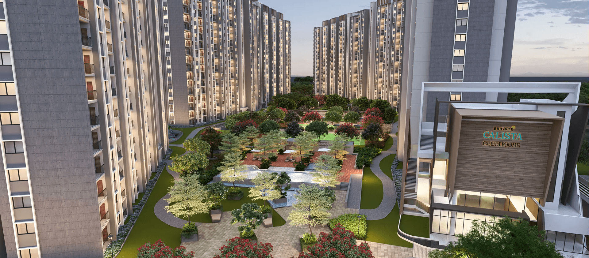 Brigade Calista is a premium housing community with 1, 1.5, 2 and 3 BHK apartments. It is situated on an 11-acre piece of land with a grand central courtyard spread over 2.5 acres.