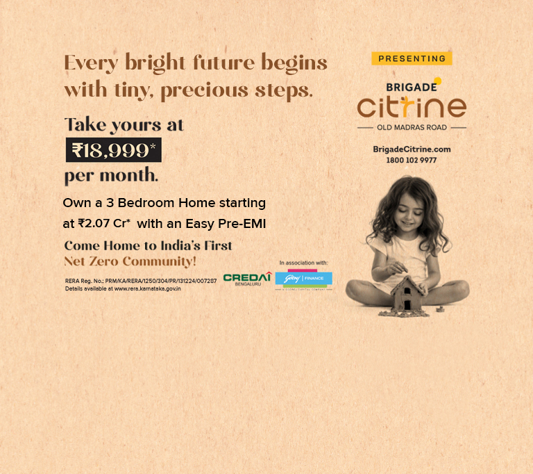 Brigade Citrine is located on Old Madras Road, Bengaluru, a well-connected area with access to schools, hospitals, and business hubs.