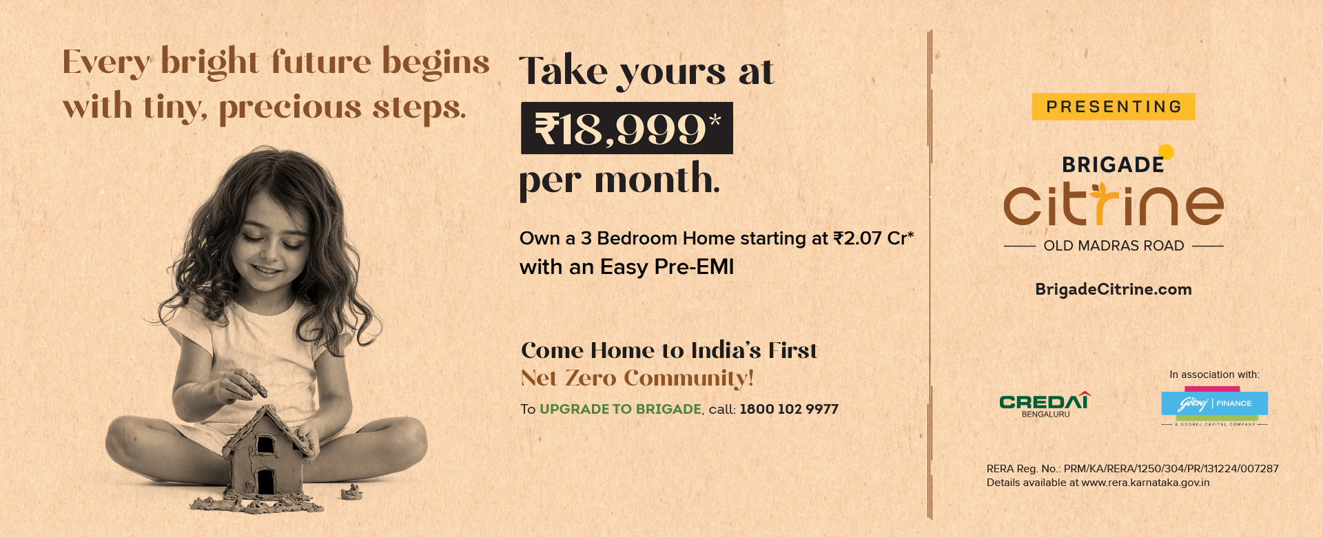 A harmonious blend of luxury and serenity, Brigade Citrine’s residential spaces are designed with both you and the planet in mind. It’s more than just a home; it’s a new way of living. Our apartments have incorporated a range of sustainable features, including green coverage, rainwater harvesting, and energy-efficient designs, to present homes that nurture both their inhabitants and the environment. Located in Bangalore’s Old Madras Road, our inclusive yet private homes face the world, not each other.