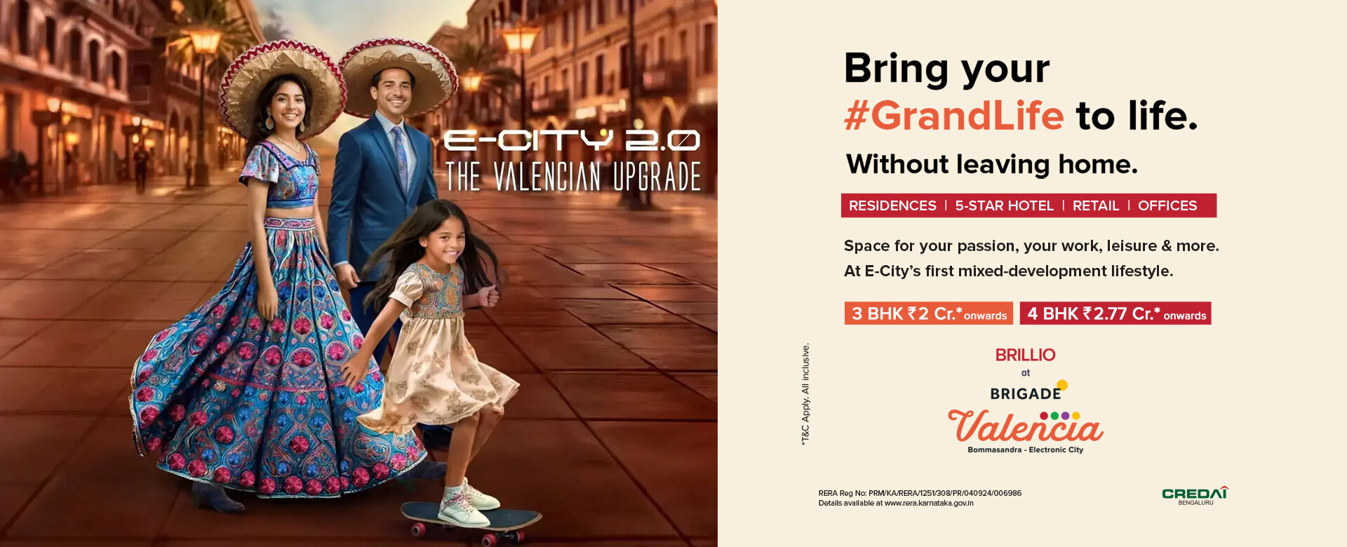 Discover your dream apartments in Electronic City Bangalore at Brigade Valencia, where comfort, design, and convenience blend seamlessly.