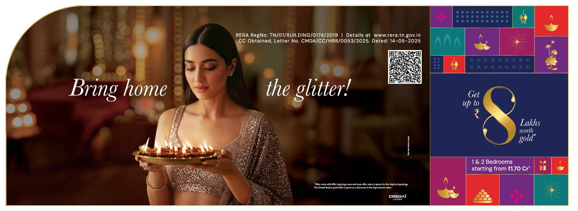 The price of 1 & 2 BHK apartments at Brigade Residences, WTC Nebula starts from ₹1.70 Crore* onwards, Plus, make this festive season even more special with our exclusive Diwali Offer get up to ₹8 Lakhs worth of gold on your booking!* Hurry, offer valid only till 31st October*.