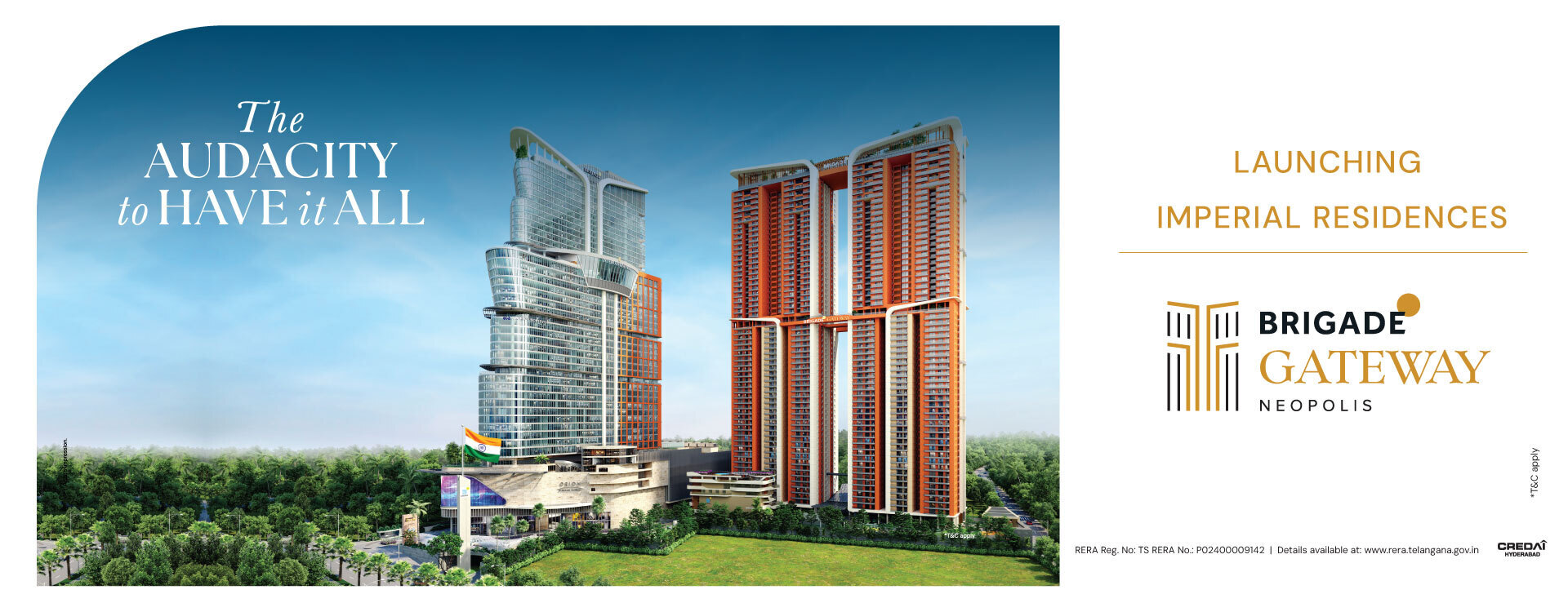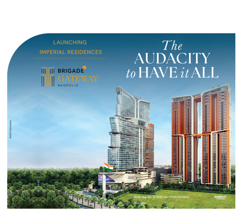 Standing with quiet confidence, Brigade Gateway at Neopolis is poised to become Hyderabad’s most sought-after neighbourhood. Spread across 9.7 acres, it is a first-of-its-kind integrated, self-sustained township in the city, offering an exquisite living experience, bringing together residential, commercial, hospitality and retail, all in one expansive location. Its signature living spaces embody the city’s Nawabi regality with its exempary architecture, spectacular views, unparalleled amenities & personalised services. Needless to say, it’s reserved for the crème de la crème.